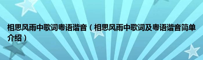 相思风雨中歌词粤语谐音(相思风雨中歌词及粤语谐音简单介绍)
