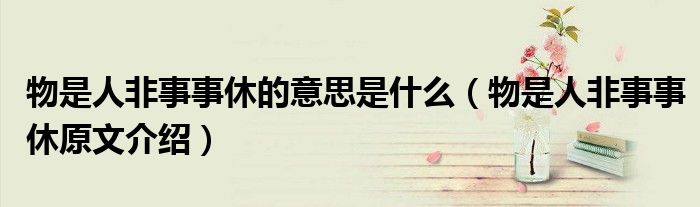 导读 大家好,阿郎来为大家解答以上问题。物是人非事事休的意思是什么,物是人非事事休原文介绍很多人还不知道,现在让我们一起来看看吧!