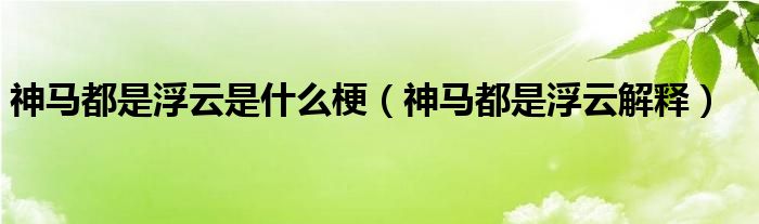 导读 大家好,阿郎来为大家解答以上问题。神马都是浮云是什么梗,神马都是浮云解释很多人还不知道,现在让我们一起来看看吧!