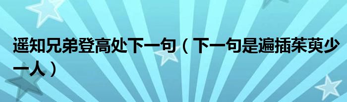 导读 大家好,阿郎来为大家解答以上问题。遥知兄弟登高处下一句,下一句是遍插茱萸少一人很多人还不知道,现在让我们一起来看看吧!