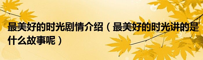 最美好的时光剧情介绍(最美好的时光讲的是什么故事呢)