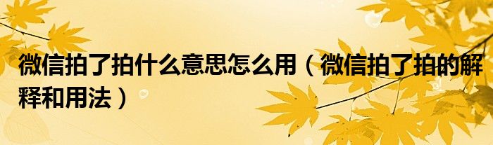 微信拍了拍什么意思怎么用(微信拍了拍的解释和用法)