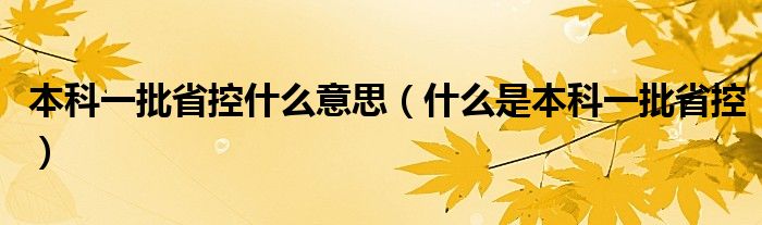 导读 大家好,阿郎来为大家解答以上问题。本科一批省控什么意思,什么是本科一批省控很多人还不知道,现在让我们一起来看看吧!