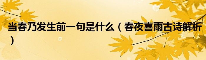 导读 大家好,阿郎来为大家解答以上问题。当春乃发生前一句是什么,春夜喜雨古诗解析很多人还不知道,现在让我们一起来看看吧!