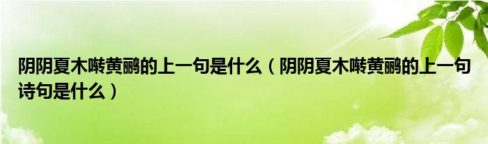 阴阴夏木啭黄鹂的上一句是什么(阴阴夏木啭黄鹂的上一句诗句是什么)