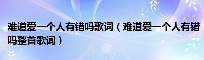 难道爱一个人有错吗歌词(难道爱一个人有错吗整首歌词)