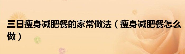 导读 大家好,阿郎来为大家解答以上问题。三日瘦身减肥餐的家常做法,瘦身减肥餐怎么做很多人还不知道,现在让我们一起来看看吧!