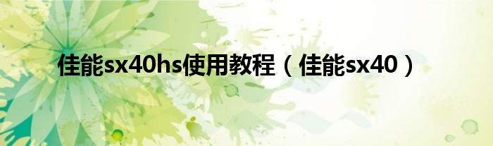佳能sx40hs使用教程(佳能sx40)