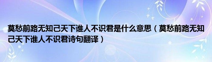 导读 大家好,阿郎来为大家解答以上问题。莫愁前路无知己天下谁人不识君是什么意思,莫愁前路无知己天下谁人不识君诗句翻译很多人还不知道,现在