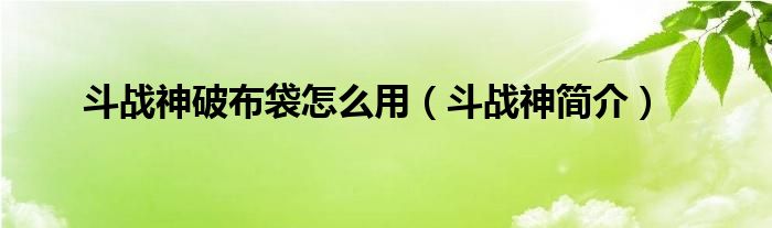 导读 大家好,阿郎来为大家解答以上问题。斗战神破布袋怎么用,斗战神简介很多人还不知道,现在让我们一起来看看吧!