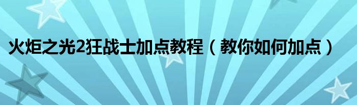 导读 大家好,阿郎来为大家解答以上问题。火炬之光2狂战士加点教程,教你如何加点很多人还不知道,现在让我们一起来看看吧!