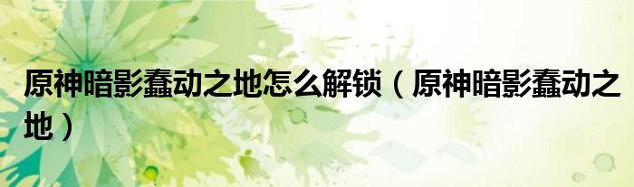 原神暗影蠢动之地怎么解锁(原神暗影蠢动之地)