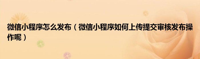 微信小程序怎么发布(微信小程序如何上传提交审核发布操作呢)