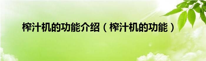 榨汁机的功能介绍(榨汁机的功能)
