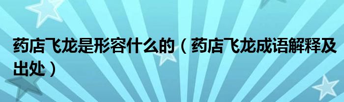 药店飞龙是形容什么的(药店飞龙成语解释及出处)
