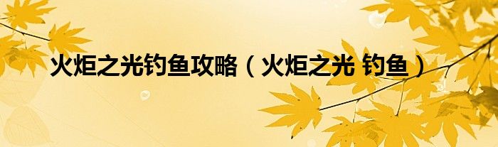 火炬之光钓鱼攻略(火炬之光 钓鱼)