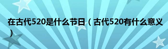 导读 大家好,阿郎来为大家解答以上问题。在古代520是什么节日,古代520有什么意义很多人还不知道,现在让我们一起来看看吧!