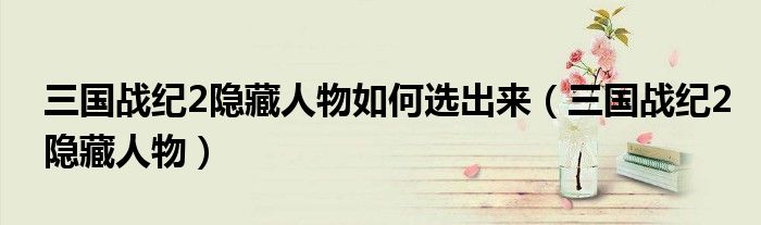 三国战纪2隐藏人物如何选出来(三国战纪2隐藏人物)
