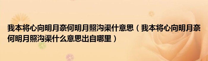 我本将心向明月奈何明月照沟渠什意思(我本将心向明月奈何明月照沟渠什么意思出自哪里)