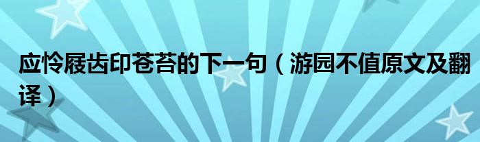 导读 大家好,阿郎来为大家解答以上问题。应怜屐齿印苍苔的下一句,游园不值原文及翻译很多人还不知道,现在让我们一起来看看吧!