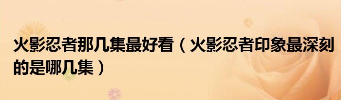 火影忍者那几集最好看(火影忍者印象最深刻的是哪几集)