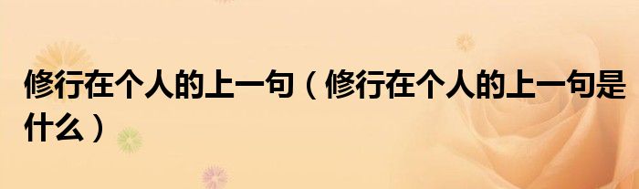 导读 大家好,阿郎来为大家解答以上问题。修行在个人的上一句,修行在个人的上一句是什么很多人还不知道,现在让我们一起来看看吧!