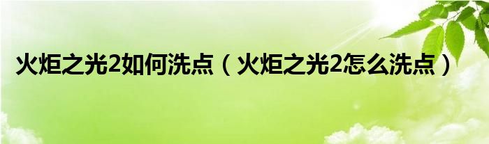 火炬之光2如何洗点(火炬之光2怎么洗点)