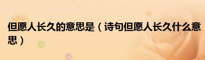 导读 大家好,阿郎来为大家解答以上问题。但愿人长久的意思是,诗句但愿人长久什么意思很多人还不知道,现在让我们一起来看看吧!
