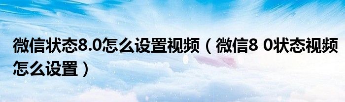 微信状态8.0怎么设置视频(微信8 0状态视频怎么设置)