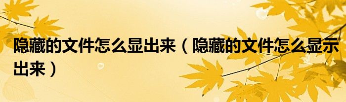 隐藏的文件怎么显出来(隐藏的文件怎么显示出来)