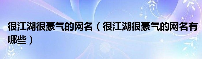 很江湖很豪气的网名(很江湖很豪气的网名有哪些)