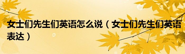 女士们先生们英语怎么说(女士们先生们英语表达)