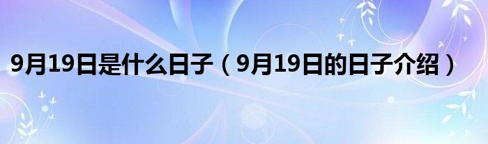 导读 大家好,阿郎来为大家解答以上问题。9月19日是什么日子,9月19日的日子介绍很多人还不知道,现在让我们一起来看看吧!