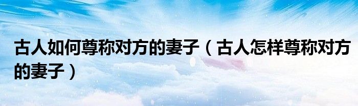 古人如何尊称对方的妻子(古人怎样尊称对方的妻子)