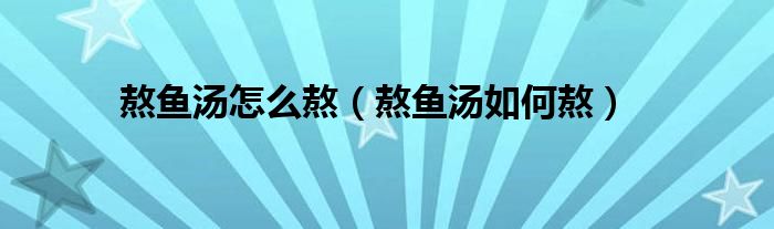 熬鱼汤怎么熬(熬鱼汤如何熬)