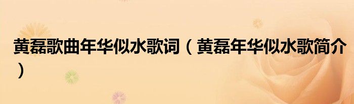 黄磊歌曲年华似水歌词(黄磊年华似水歌简介)