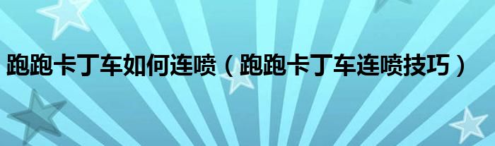 跑跑卡丁车如何连喷(跑跑卡丁车连喷技巧)
