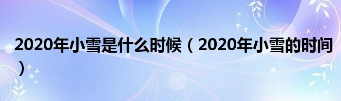 导读 大家好,阿郎来为大家解答以上问题。2020年小雪是什么时候,2020年小雪的时间很多人还不知道,现在让我们一起来看看吧!