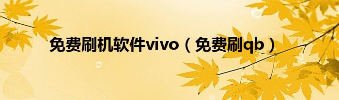 大家好,麟非来为大家解答以上问题,免费刷机软件vivo,免费刷qb很多人还不知道,现在让我们一起来看看吧!