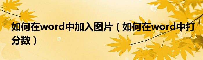 导读 大家好,麟非来为大家解答以上问题,如何在word中加入图片,如何在word中打分数很多人还不知道,现在让我们一起来看看吧!Word也是日常工作