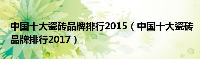 中国十大瓷砖品牌排行2015(中国十大瓷砖品牌排行2017)