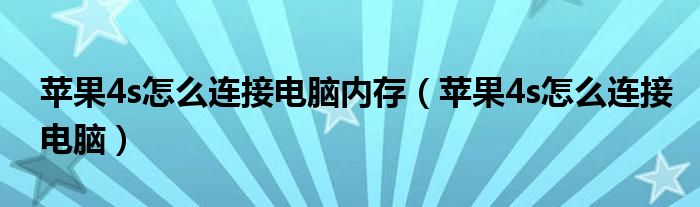 苹果4s怎么连接电脑内存(苹果4s怎么连接电脑)