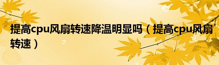 提高cpu风扇转速降温明显吗(提高cpu风扇转速)