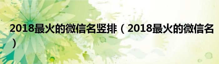 2018最火的微信名竖排(2018最火的微信名)