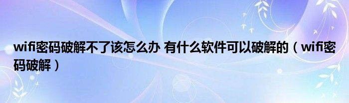 wifi密码破解不了该怎么办 有什么软件可以破解的(wifi密码破解)