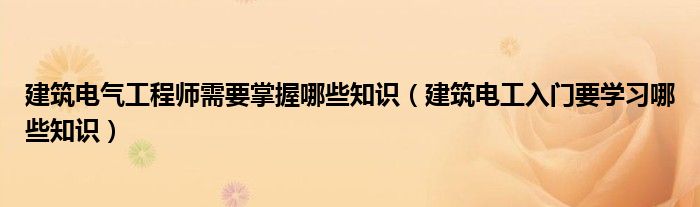 建筑电气工程师需要掌握哪些知识(建筑电工入门要学习哪些知识)