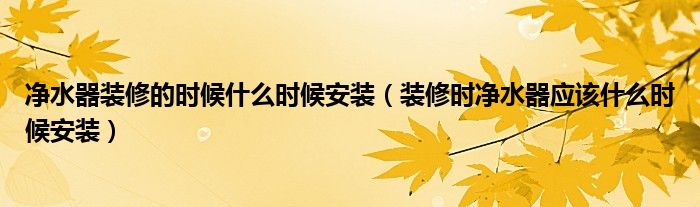 净水器装修的时候什么时候安装(装修时净水器应该什么时候安装)