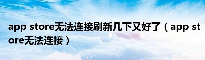导读 大家好,麟非来为大家解答以上问题,app store无法连接刷新几下又好了,app store无法连接很多人还不知道,现在让我们一起来看看吧!1、