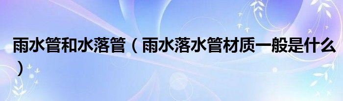 大家好,精选小编来为大家解答以上的问题。雨水管和水落管,雨水落水管材质一般是什么很多人还不知道,现在让我们一起来看看吧!