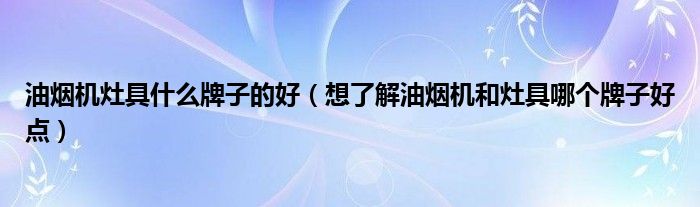 导读 大家好,精选小编来为大家解答以上的问题。油烟机灶具什么牌子的好,想了解油烟机和灶具哪个牌子好点很多人还不知道,现在让我们一起来看看